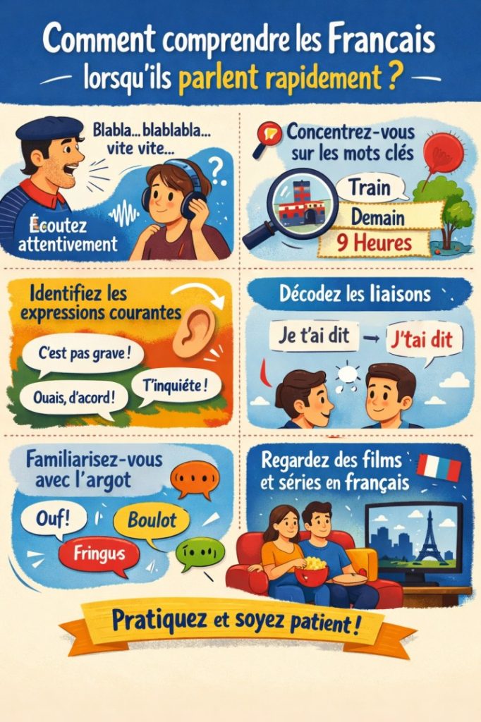 مقدمة يشعر معظم متعلمي اللغة الفرنسية بالإحباط عندما يستمعون إلى متحدثين أصليين، لأنهم يتحدثون بسرعة ويختصرون الكلمات ويستخدمون تعبيرات يومية غير موجودة في الكتب. لكن الحقيقة هي: ✔ المشكلة ليست في سرعة الفرنسيين✔ بل في عدم التعود على النطق الطبيعي مع التدريب الصحيح، يمكنك فهم الفرنسية السريعة بسهولة. في هذا المقال ستتعلم تقنيات فعالة لتحسين […]
