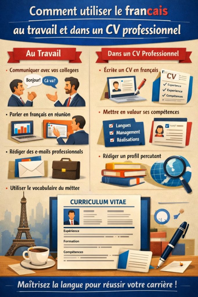 مقدمة إتقان اللغة الفرنسية يمكن أن يفتح أمامك أبواباً واسعة في سوق العمل المحلي والدولي. العديد من الشركات العالمية والمؤسسات الدولية تبحث عن موظفين يجيدون الفرنسية، خاصة في مجالات خدمة العملاء، السياحة، الترجمة، والتعليم. استخدام الفرنسية بشكل احترافي في السيرة الذاتية (CV) وفي بيئة العمل يعزز فرصك في الحصول على وظيفة مميزة. في هذا المقال […]