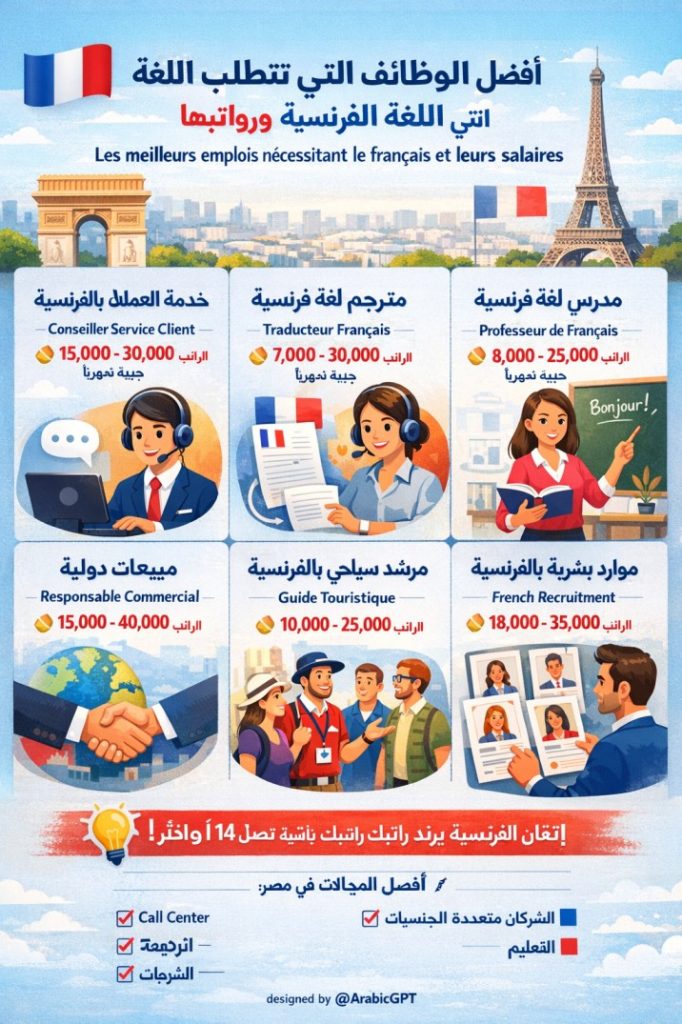 مقدمة إتقان اللغة الفرنسية لم يعد مجرد مهارة إضافية، بل أصبح مفتاحاً للحصول على وظائف مميزة برواتب تنافسية. العديد من الشركات العالمية والمؤسسات الدولية تبحث عن متحدثين بالفرنسية للتواصل مع الأسواق الفرنكوفونية والعملاء الدوليين. إذا كنت تتحدث الفرنسية، يمكنك الوصول إلى فرص عمل أفضل داخل بلدك أو خارجه. في هذا المقال ستتعرف على أفضل الوظائف […]