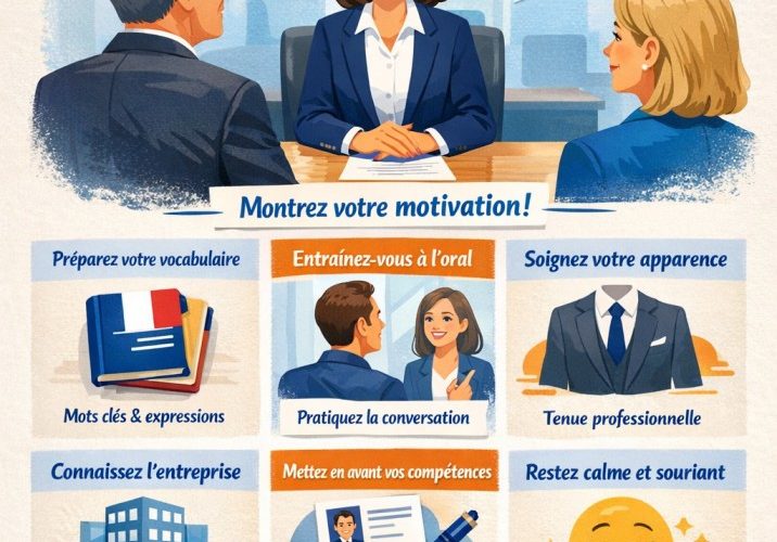 النجاح في مقابلة العمل بالفرنسية يعتمد على التحضير الجيد، الثقة، والتعبير الواضح.